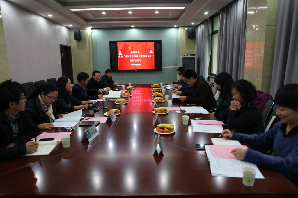 11月28日下午,2014年武汉文化创意蓝皮书咨询会在国家文化产业研究中心305会议室举行。武汉市宣传部吴天勇副巡视员、中南财经政法大学王海粟教授、武汉市发改委服务业处处长叶晓飞等领导、专家及中心全体教师参加了会议。会议由中心纪东东副教授主持。