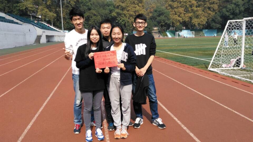 2015年11月1日上午9点30分,“奔跑吧,园博!”华中师范大学分赛区比赛在佑铭体育馆火热开赛,来自各个学院七十支队伍包括留学生在内的400余名同学参与了这次活动。其中我中心派出了两只代表队参加,队名分别为“文产幼儿园”和“文产文艺奔跑团”。其中由14级研究生叶嘉文、朱娅阳、邝艳梅、田星星、王奥五人组成的“文产幼儿园”代表队以28分40秒的成绩在74支代表队中脱颖而出,获得了华中师范大学分赛区第一名的好成绩。