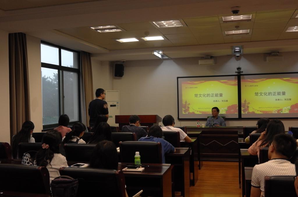 刘玉堂教授深入浅出地为在座师生全面解读了楚文化的正能量,让在座师生享受到一次楚文化的精神大餐,更为大家带来了巨大的正能量。讲坛结束,同学们均表示受益匪浅。至此,第十七期“华文讲坛“圆满结束。