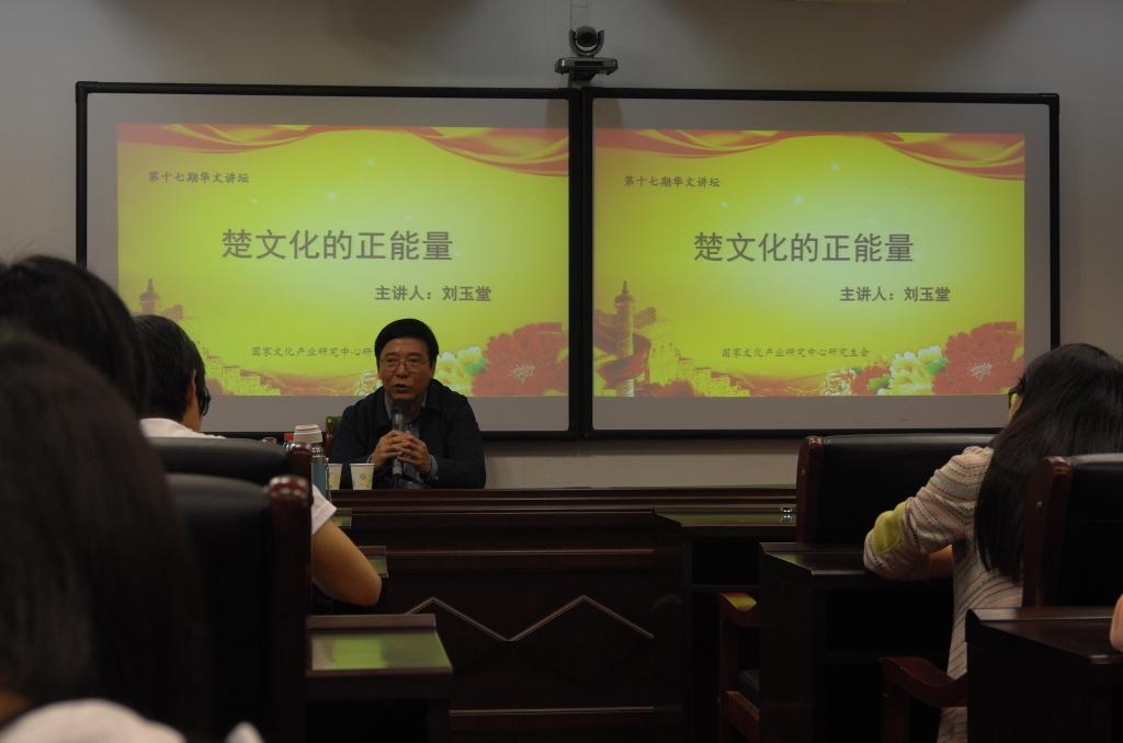 5月20日下午两点半,由国家文化产业研究中心主办、中心研会承办的第十七期“华文讲坛”在中心318多功能报告厅成功举办。刘玉堂教授受邀担任本期“华文讲坛”的主讲嘉宾,为中心师生主讲“楚文化的正能量”。刘玉堂教授现为湖北省社会科学院副院长、中国民族史学会副会长、华中师范大学国家文化产业研究中心兼职教授。