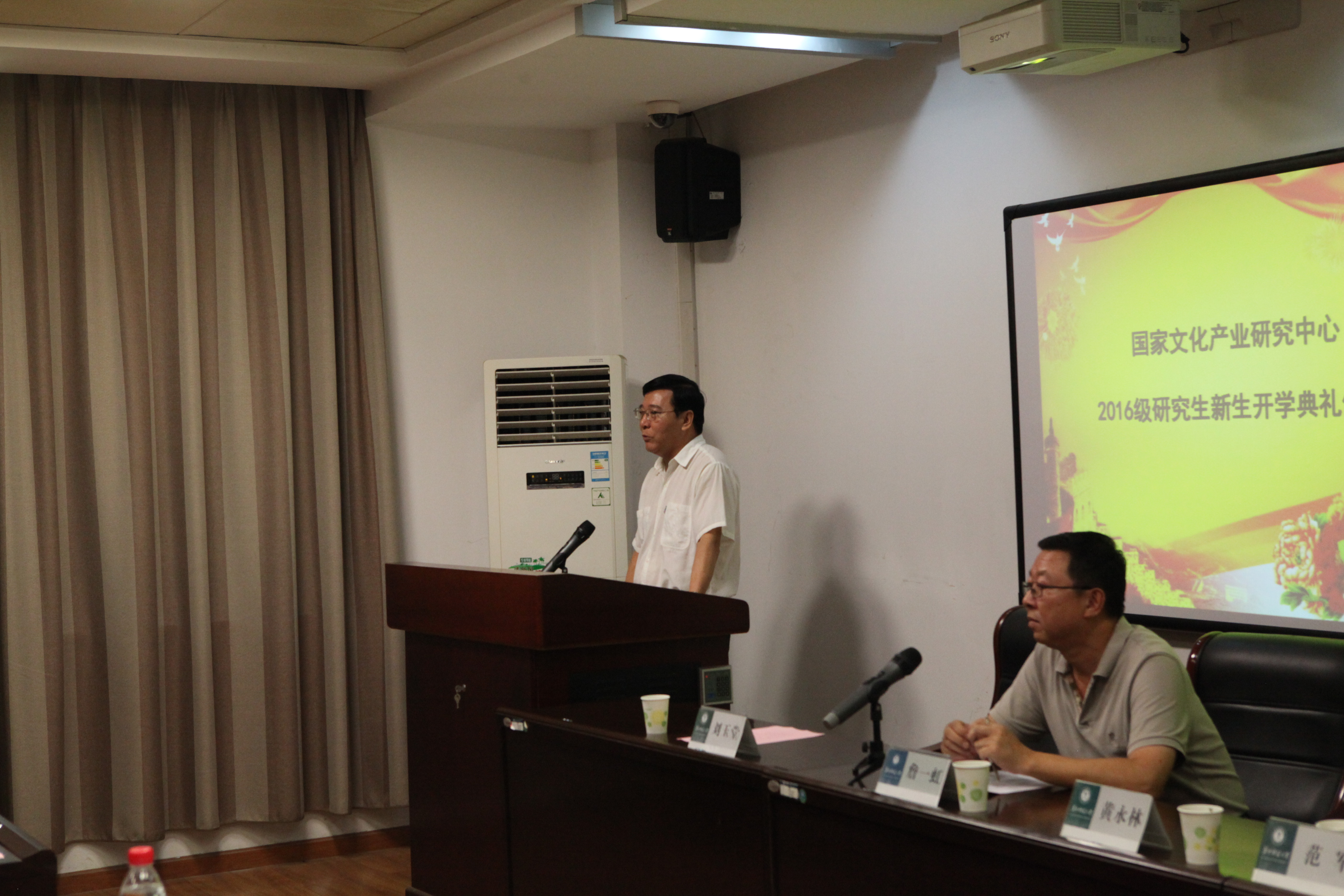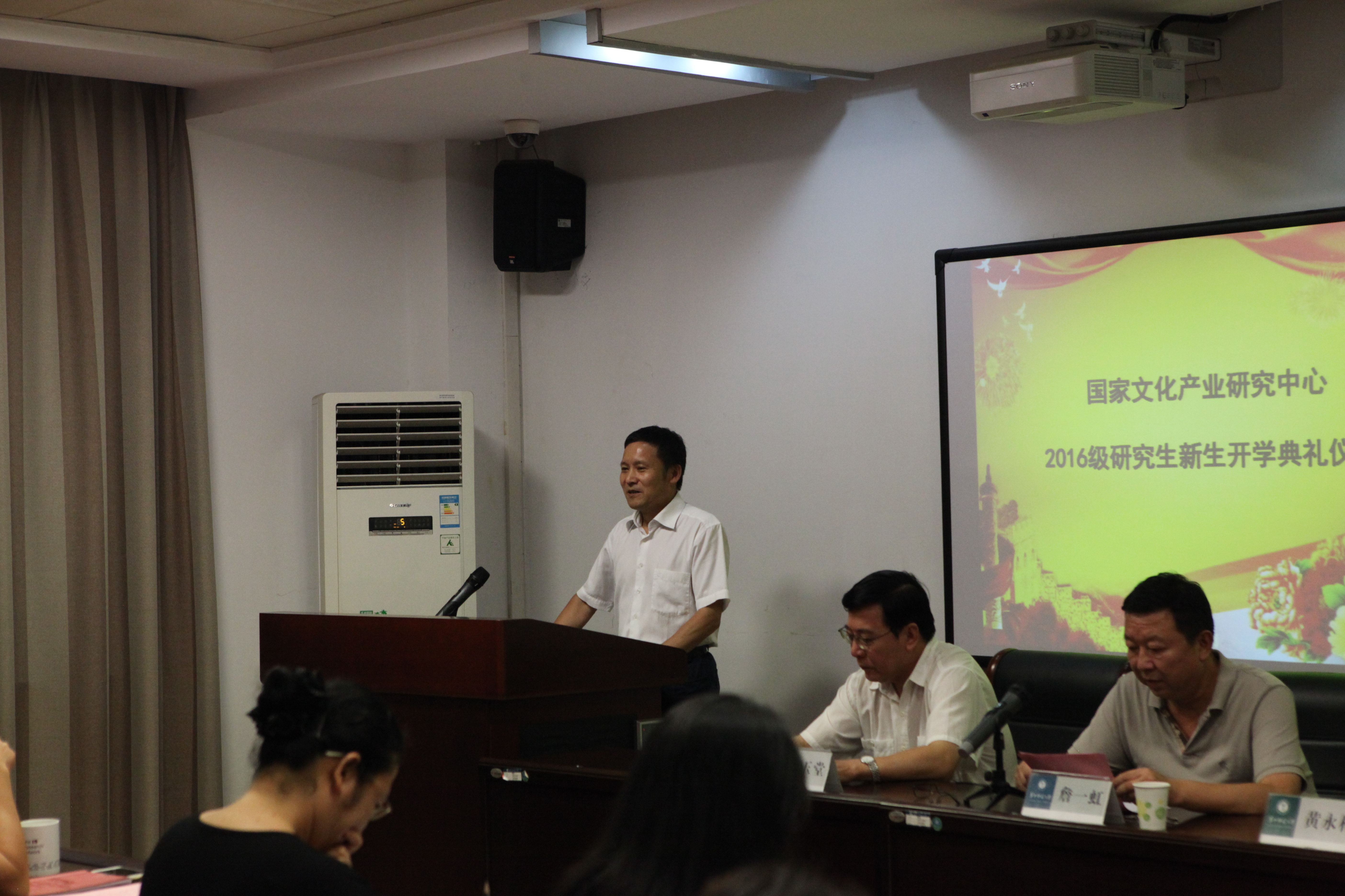 9月2日下午,中心2016级新生开学典礼在中心318报告厅隆重举行。华中师范大学副校长、国家文化产业研究中心主任黄永林教授,国家文化产业研究中心常务副主任詹一虹教授,华中师范大学出版社有限责任公司董事长、华大宏图文化事业发展公司董事长范军教授以及湖北省社会科学院副院长刘玉堂教授出席典礼。参加典礼还有国家文化产业研究全体中心老师及2016级新生。典礼由詹一虹教授主持。