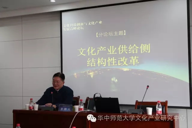 下午4时左右,由上海交通大学国家文化产业创新发展研究基地主任、华中师范大学特聘教授胡惠林主持的“文化产业供给侧结构性改革”分论坛在科学会堂举行,来自全国的二十余名学术界、企业界代表参加了本次论坛。