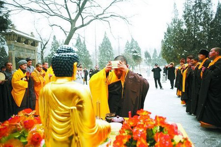 自2008年以来,少林寺恢复每年施粥的传统。少林药局的僧人严格按照佛医古例,制作出“少林五行腊八粥”。今天,少林寺会分别在少林药局门口、郑州市区、河南各地、少林寺各下院以及海外少林文化中心等地设立施粥点。预计施粥20万份以上。