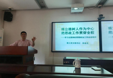 活动伊始,徐金龙同志介绍了他本次讲座的主题为“将立德树人作为中心,把思政工作贯穿全程”,主要内容为学习和解读《习近平在全国高校思想政治工作会议上发表的重要讲话》。徐金龙同志首先以华中师范大学的校训“求实创新,立德树人”为切入点展开论述,紧接着他结合自己的工作实际和日常生活,从多方面解读了《习近平在全国高校思想政治工作会议上发表的重要讲话》,通过徐金龙同志的讲解,大家都意识到了高校思想政治工作的必要性和重要性。