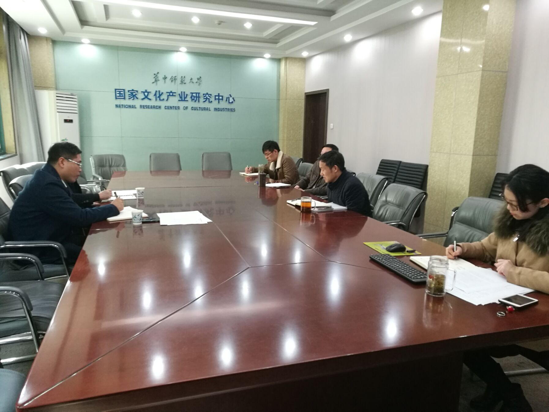 3月9日下午,国际合作与交流处彭涛副处长一行来我中心开展国际化工作的调研,会议由华中师范大学国家文化产业研究中心主任黄永林教授主持,常务副主任詹一虹教授、党政办公室主任夏靓参加会议。