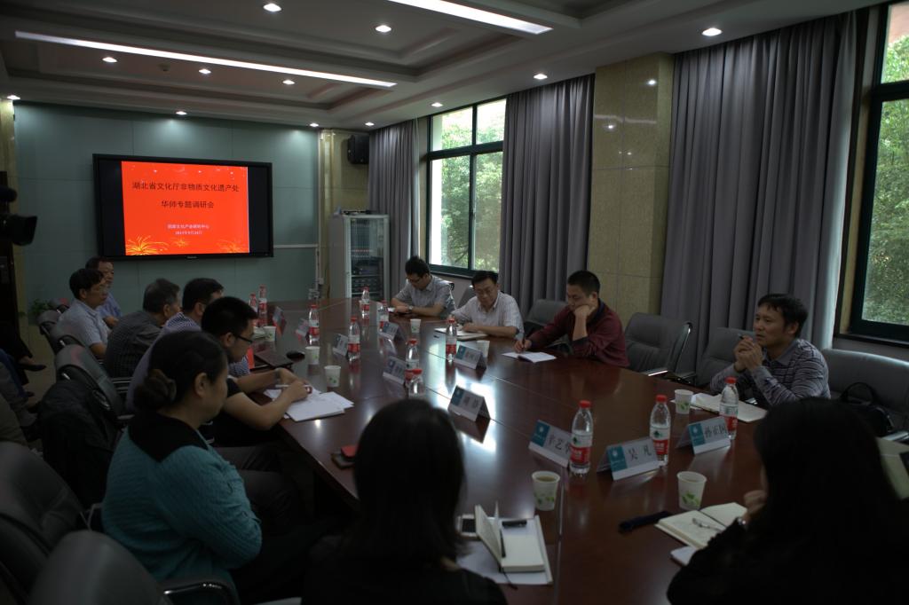 国家文化产业研究中心常务副主任詹一虹围绕学科建设、科研成果、地方服务、未来规划等几个方面重点介绍了中心的建设情况特别是非物质文化遗产方面的保护、研究和开发利用情况。随后,我校非遗保护专家刘守华、王玉德、姚伟钧、胡静、辛艺华、吴凡、孙正国等教授依次发言,畅谈了在非遗研究保护方面的成绩、感悟和建议。