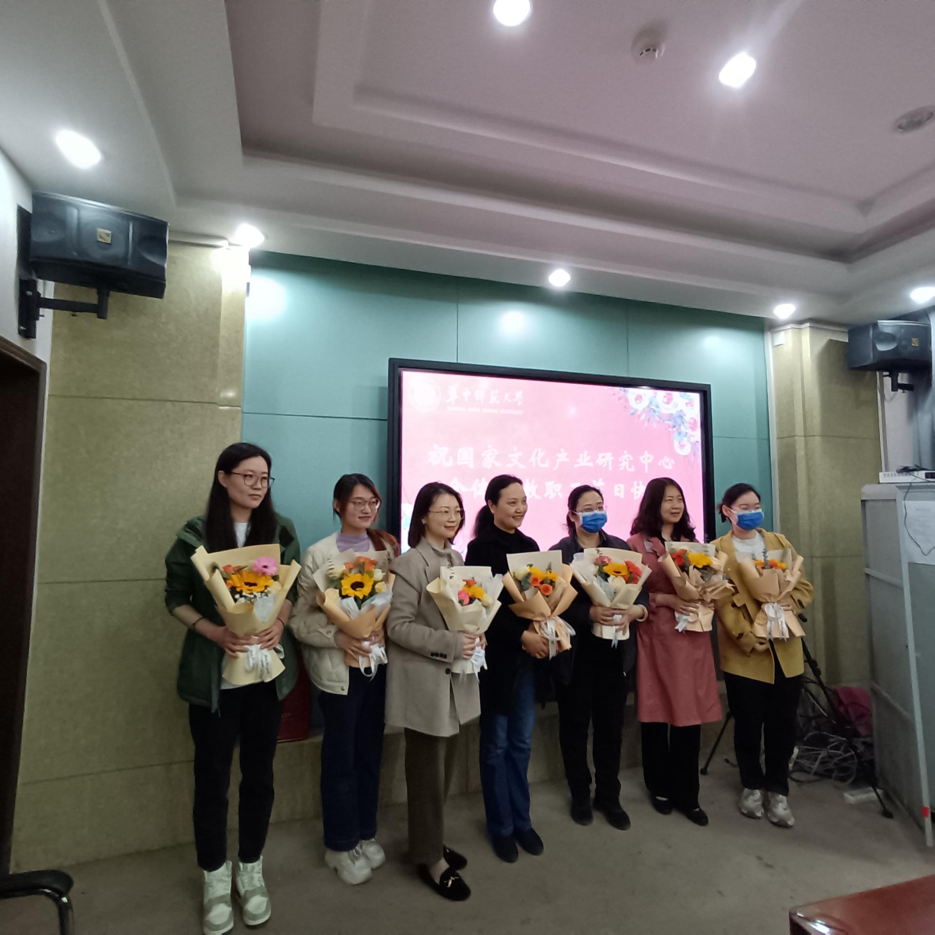 会议恰逢“三·八”国际妇女节。在会议开始前,国家文化产业研究中心主任黄永林代表中心向全体女教职工致以衷心的感谢与节日的问候,中心党委书记连海江带领中心男老师向女老师送上鲜花,表达祝贺。
