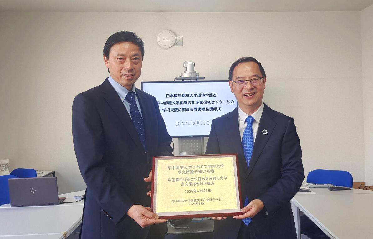 12月11日,查道林出席我校国家文化产业研究中心与东京都市大学环境学院合作协议签约仪式,并为“华中师范大学日本东京都市大学农文旅融合研究基地”授牌。他表示,希望双方以此次缔结合作协议为契机,共建人才培养以及科研创新平台,充分发挥授牌基地在联通两校师生双向交流方面的积极作用,密切合作,为培养拔尖创新人才,服务经济社会发展作出更大贡献。