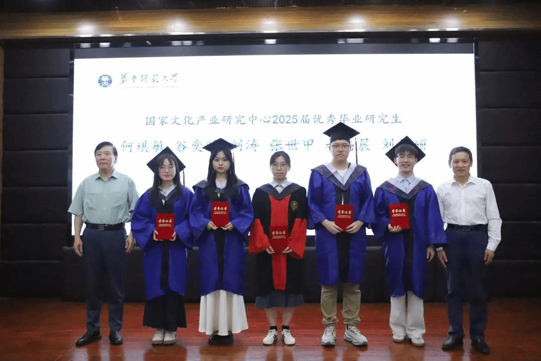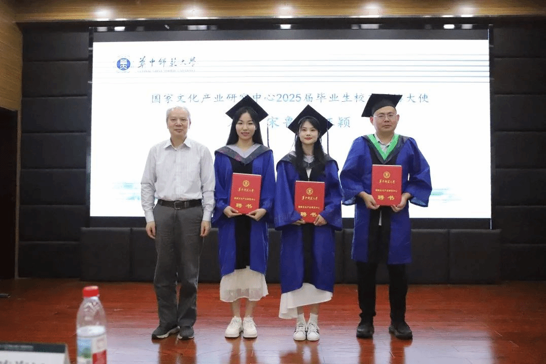 国家文化产业研究中心主任孙传明宣读了准予毕业及学位授予的相关决定;中心副主任张文元宣读了优秀毕业生名单;黄永林教授、刘玉堂教授为优秀毕业生颁发证书。