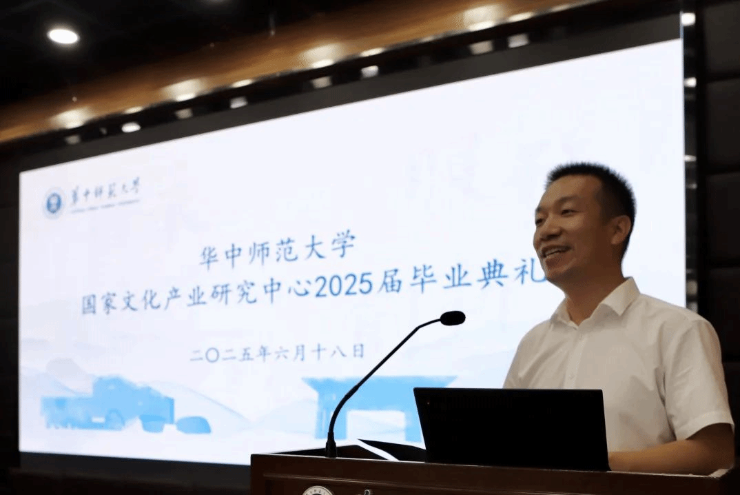 6月18日,华中师范大学国家文化产业研究中心2025年毕业典礼在化学学院823会议室隆重举行。参加典礼的有华中师范大学原副校长、国家文化产业研究中心原主任黄永林,国家文化产业研究中心特聘教授刘玉堂、范军,国家文化产业研究中心党委书记连海江,主任孙传明,以及研究生导师谈国新、李林、张文元、纪东东、叶林、徐金龙、寇蓉、窦瑜彬、徐若蓝。参加典礼的还有党政办公室主任叶苏、辅导员秦曰涵、党务干事刘慧雯、科研秘书方旖旎以及2025届毕业生和毕业生家长们。