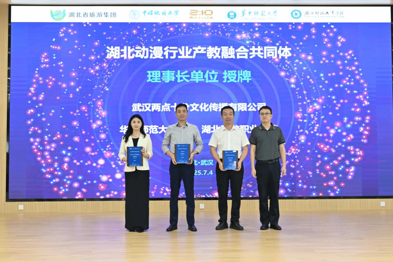 2025年7月4日,“湖北文旅人才高质量培养研讨会暨动漫行业产教融合共同体成立大会”在湖北科技职业学院成功举办。本次会议由武汉两点十分文化传播有限公司、华中师范大学、湖北科技职业学院联合主办,湖北省教育厅、湖北省文旅厅和湖北省广播电视局指导支持,标志着湖北省首个省级动漫产教融合平台正式落地。